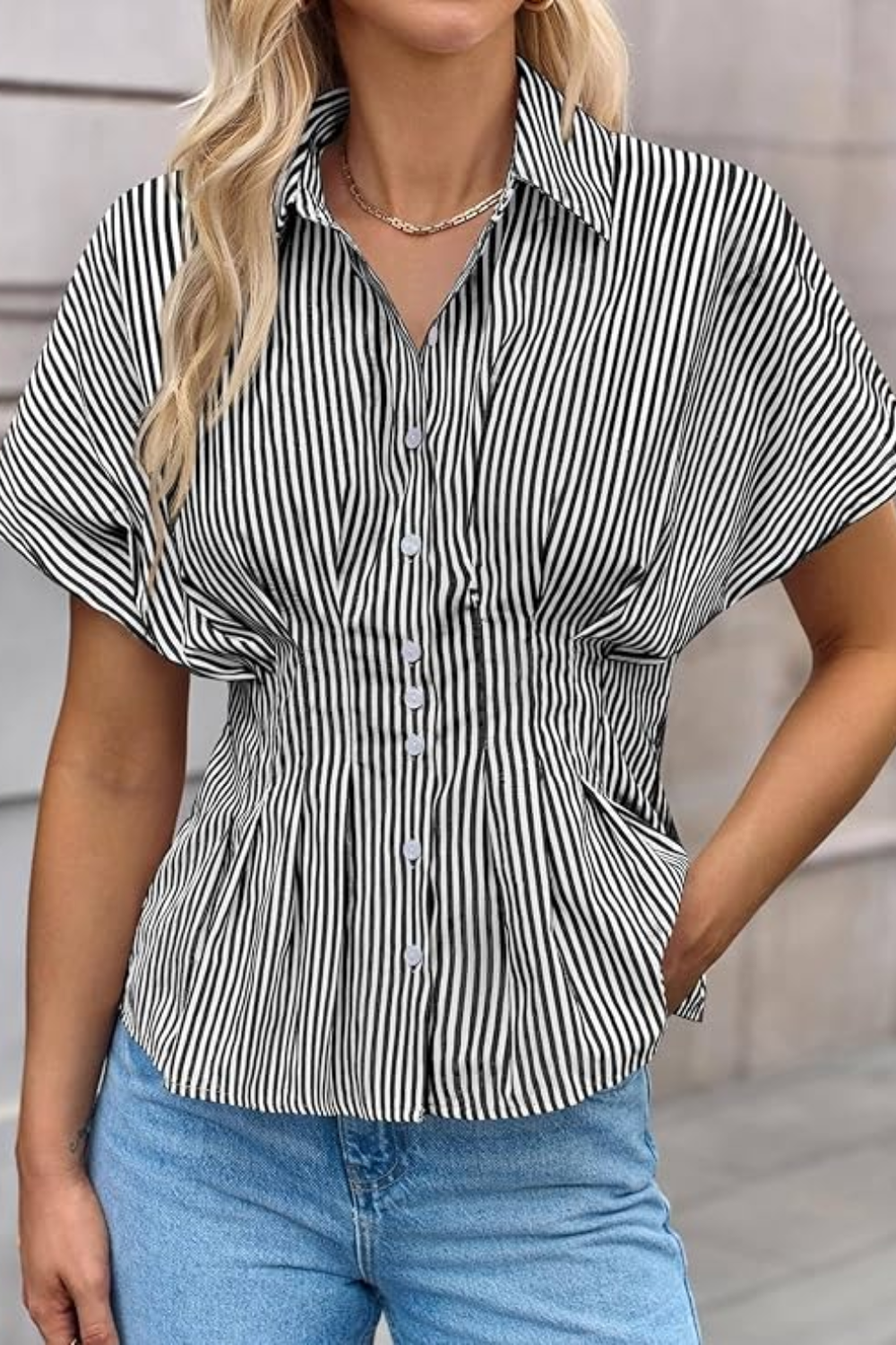 Tankaneo Womens Striped Peplum Button Down Shirt